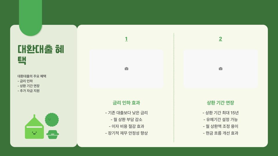 대환대출을 통해 어떤 이점이 있을까요? 우선, 대환대출은 금리 절감이 가장 큰 장점입니다. 기존의 대출이 높은 금리를 적용받고 있다면, 보다 낮은 금리로 대체할 수 있는 기회를 제공합니다. 둘째, 상환 유연성을 높일 수 있습니다. 특히 사업이 불안정한 기간 동안 부담을 줄일 수 있는 선택이 됩니다. 마지막으로, 대환대출을 통해 소상공인들은 재정 계획을 개선할 수 있습니다.