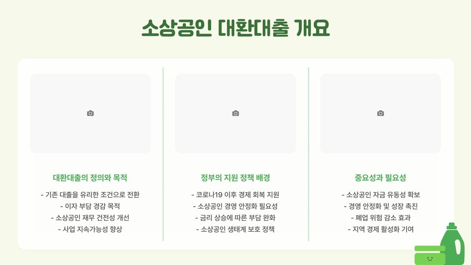 대환대출의 필요성을 이해하는 것은 소상공인들이 현명한 재정 결정을 내리는 데 큰 도움이 됩니다. 저금리 대환대출을 활용하면, 월 상환액을 줄이고, 재정적 여유를 확보할 수 있어 사업의 지속 가능성을 높일 수 있습니다. 이러한 변화는 결국 소상공인의 회복과 성장으로 이어질 것입니다.