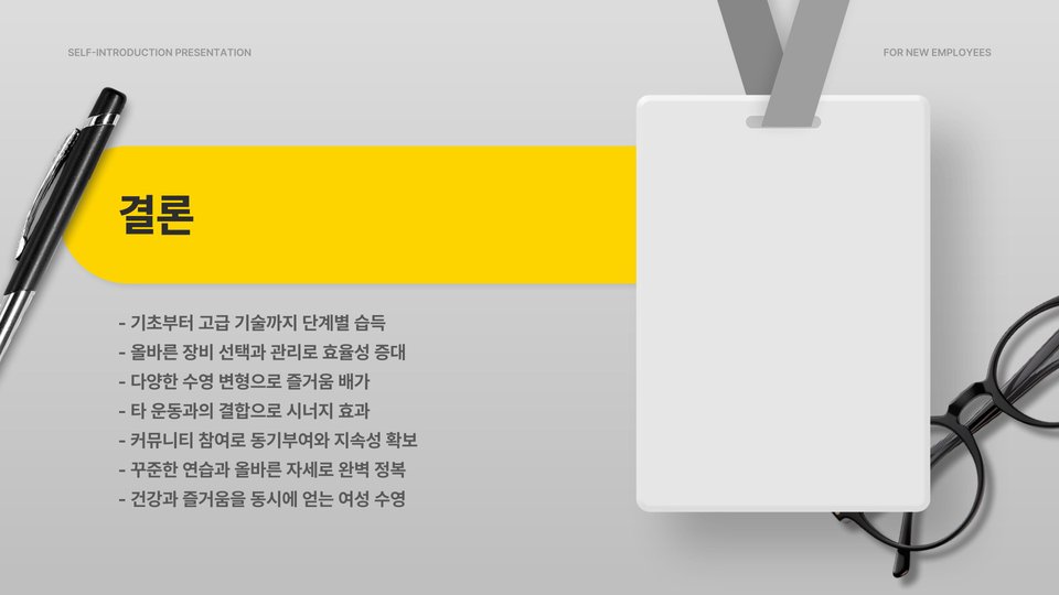 자신만의 수영 스타일을 찾고, 지속적으로 연습하면서 당신의 수영 실력을 한 단계 업그레이드해 보세요!