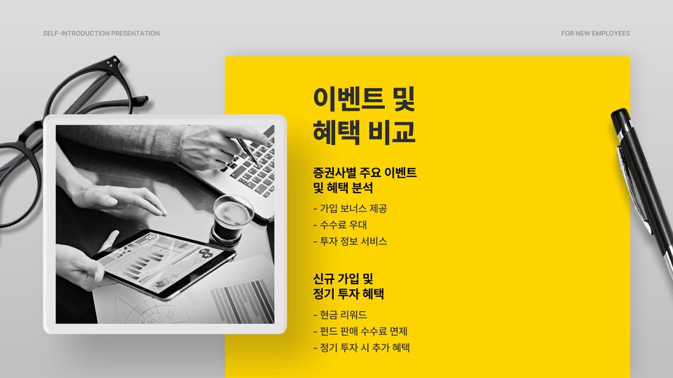 투자자들을 위한 다양한 혜택을 제공하며, 특히 장기적으로 지속 가능한 투자 수익률을 목표로 하고 있습니다. NH투자증권의 투자 전략은 글로벌 경제 전망을 바탕으로 하며, 실질적인 수익률 개선을 위해 다양한 애널리스트들의 의견을 반영합니다. 이외에도 고객 서비스와 맞춤형 상담을 통해 개인적인 투자 목표에 따른 맞춤형 전략을 제안합니다.