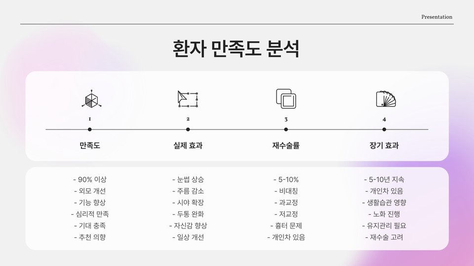 마지막으로, 이마거상의 장기적인 성과도 고려해야 합니다. 결과는 개인의 노화 속도에 따라 달라질 수 있으며, 시간이 지나면서 다시 수술이 필요할 수도 있습니다. 이러한 측면에서 이마거상은 단기적인 치료가 아니라 장기적인 관리가 필요한 절차로 이해해야 합니다.