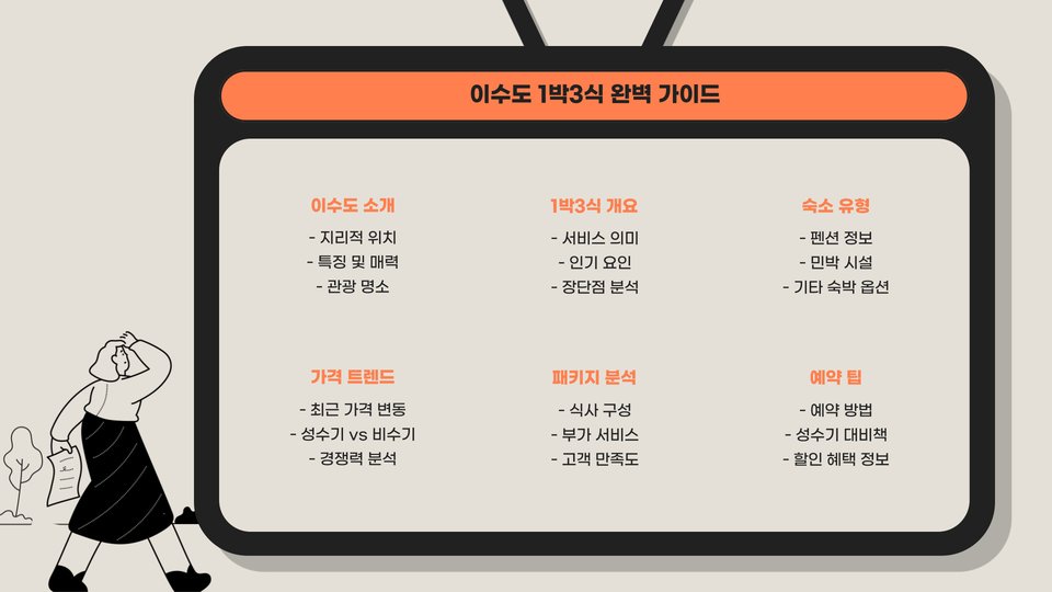 결론적으로, 이수도의 1박 3식 패키지는 다양한 가격대와 혜택으로 많은 여행객들에게 매력적인 옵션이 되고 있습니다. 여행을 계획하며 가격 변동과 할인 혜택을 잘 파악한다면 더욱 값진 경험을 하실 수 있을 겁니다.