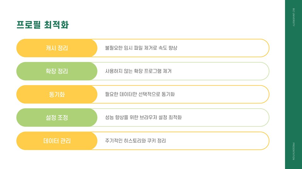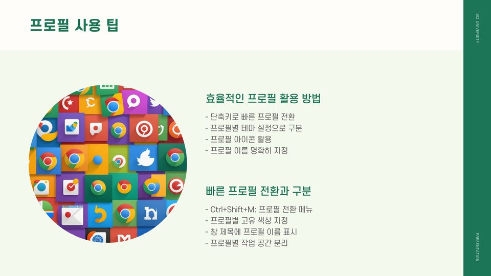 크롬 프로필을 사용하는 데 있어 몇 가지 유용한 팁이 있습니다. 첫 번째 팁은 각 프로필의 환경을 명확하게 설정하는 것입니다. 업무용과 개인용 프로필을 구분하는 것뿐 아니라, 각각의 프로필에 적합한 확장 프로그램과 즐겨찾기를 추가하세요.