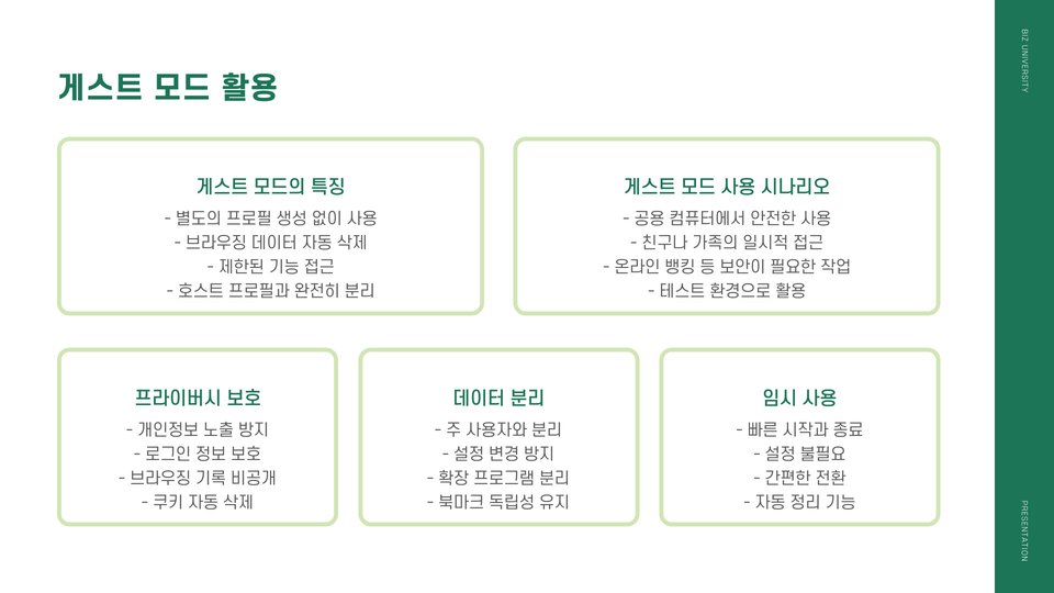 - 공용 컴퓨터 사용 시 개인정보 입력 주의.